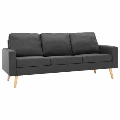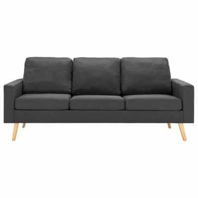 This sofa set is upholstered in soft-to-touch fabric and features thickly padded cushions, offering comfortable space to relax. The wooden frame provides support and stability to the entire construction.