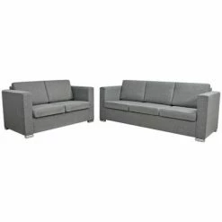 L’ensemble de canapés dispose d’un large coin salon et de coussins épais et rembourrés pour un confort d’assise optimal. Il est tapissé en tissu de haute qualité qui est résistant à l’usure. Les housses de coussin sont faciles à nettoyer car elles sont amovibles et peuvent être lavées à la machine. Le cadre fort en bois et les pattes chromées contribuent à sa construction robuste.